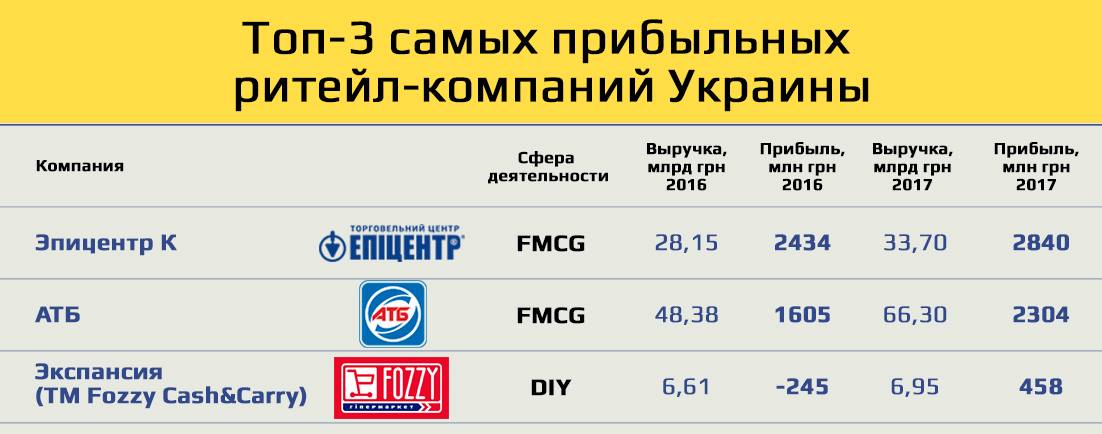 Дивує різкий ривок зі збитків в прибуток ще однієї компанії, що входить в Fozzy Gorup – Експансія. Якщо в 2016-му вона відпрацювала в мінус 245 млн грн, то минулий рік закінчила з плюсом в 458 млн грн, в грошовому вираженні наростивши прибуток більше за всі інші українські компанії сфери роздрібної торгівлі.