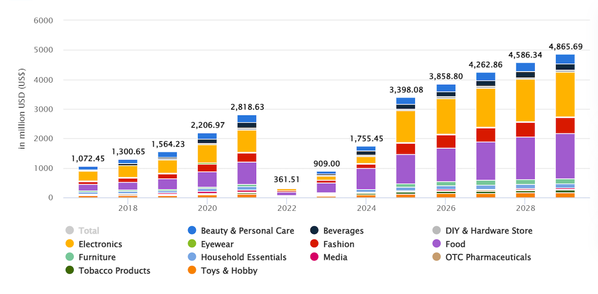 *дохід ринку електронної комерції в Україні у різних категоріях, джерело — Statista Market Insights