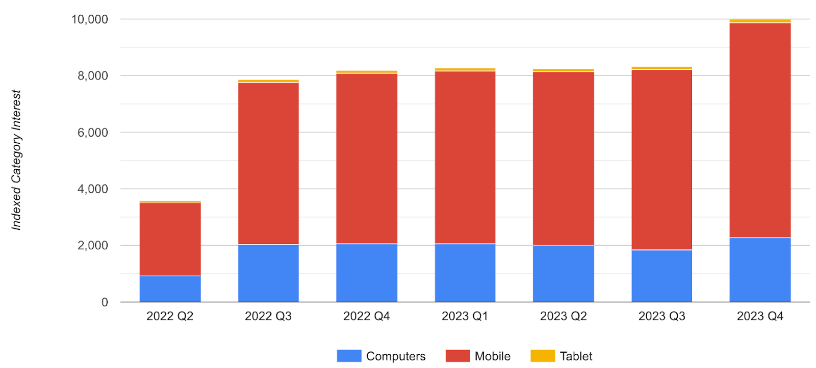 *динаміка показу рекламних оголошень у категорії відповідно до пристроїв, дані Google Market Explorer