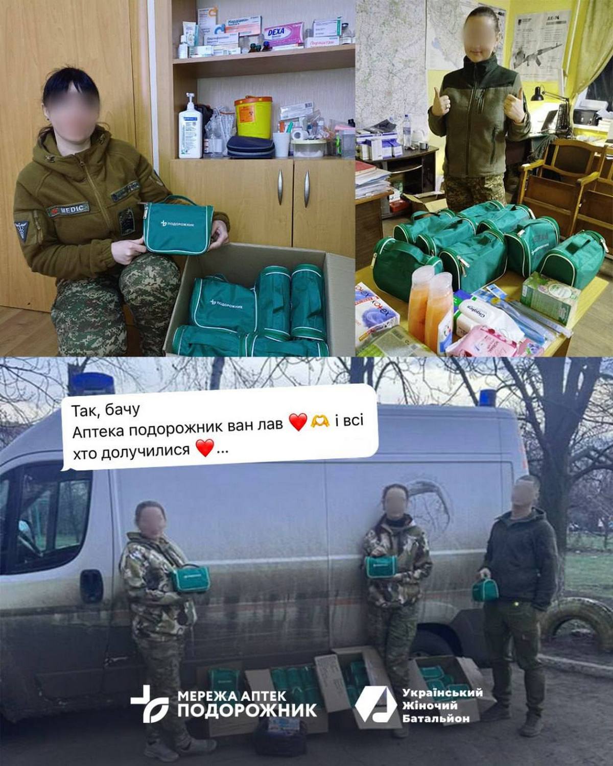 «Загалом Український жіночий батальйон опікується понад 200 дівчат, і кожна з них має бути здоровою та готовою до виконання бойових завдань. Ми вдячні мережі аптек Подорожник за цю вагому підтримку та за те, що допомагає нам отримувати все необхідне для лікування та профілактики», — наголошують в УЖБ.
