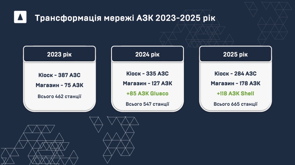 У 2024 році ми поступово розпочали перебудову кіосків у магазини. До мережі приєдналися АЗК Glusco, і загальна кількість АЗК зросла до майже 550.
