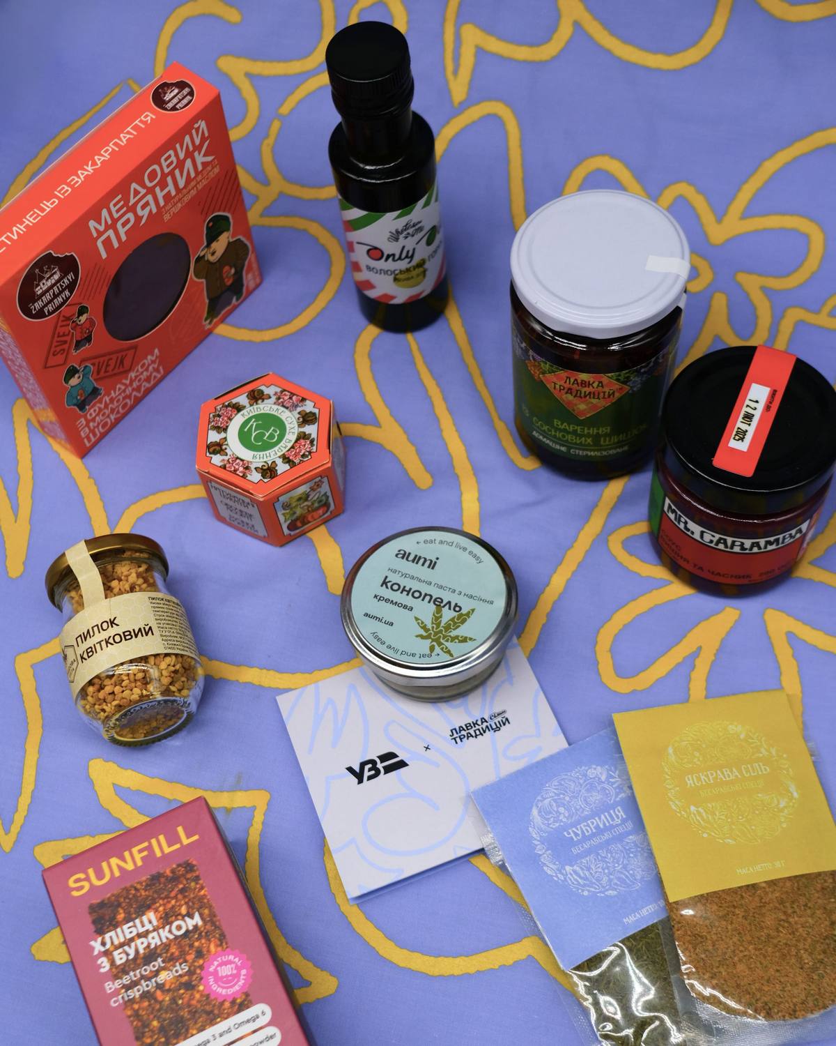 У подарункових наборах – крафтові смаколики від 12 резидентів “Лавки Традицій” з усіх куточків України. Від варення з соснових шишок і бесарабських спецій до конопляної пасти та закарпатських пряників з горіхами — усе це створено фермерами та крафтярами з великою любов’ю до свого діла. Серед виробників цього дропу: Київське сухе варення зі своїми натуральними цукатами, Molfar просто з самісінького Закарпаття, з трав’яними зборами, що власноруч зібрані зі схилів українських Карпат та інші.