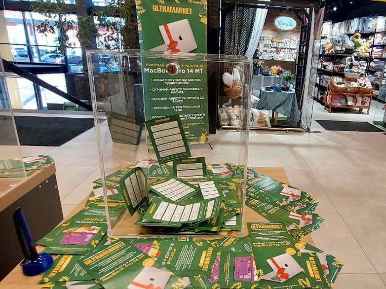 В гіпермаркеті Ultramarket на Подолі розігрують новий MacBook та інші цінні призи