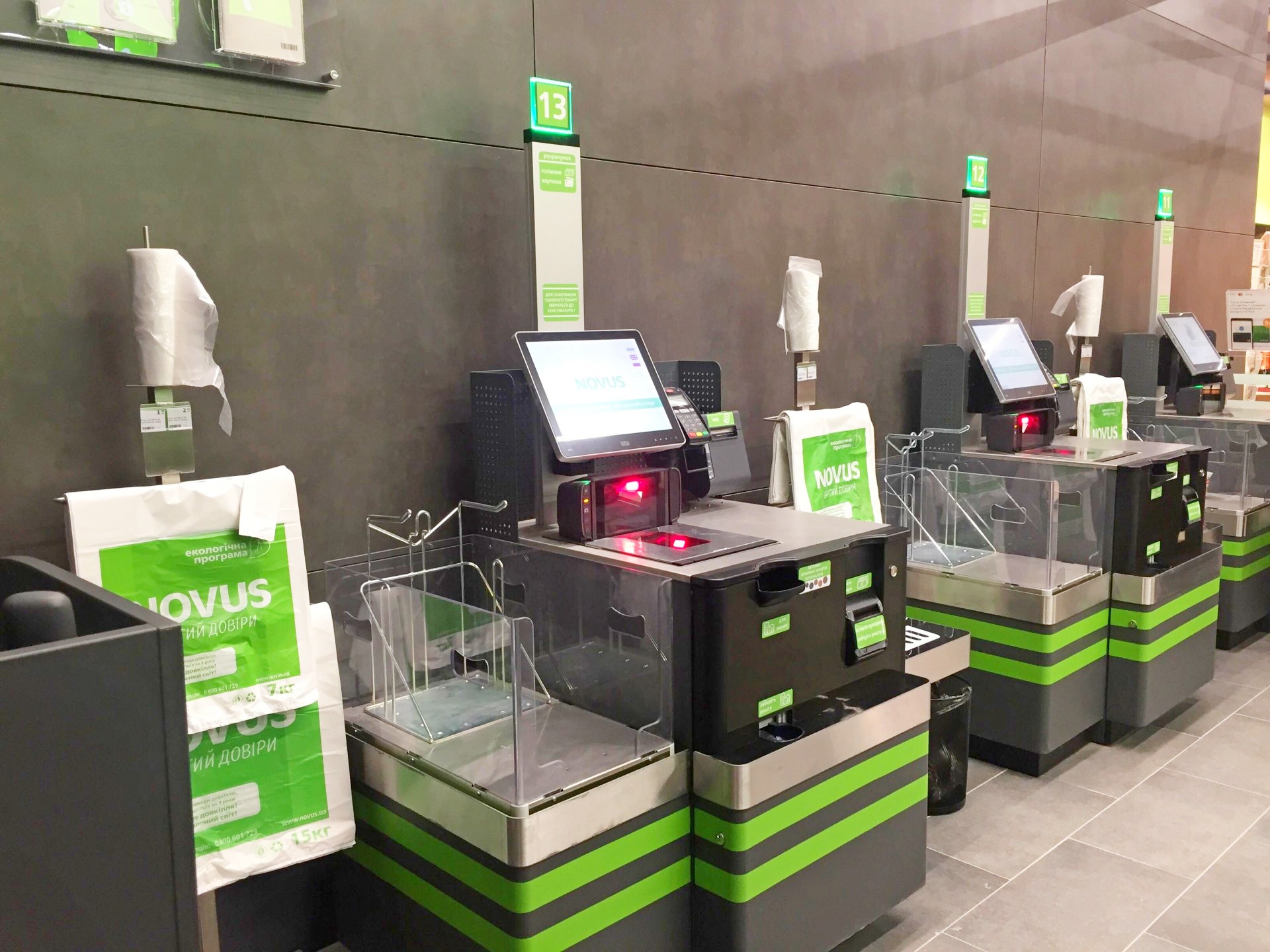 Наприкінці 2017 року Novus розпочала впровадження кас самообслуговування, на яких покупець зміг самостійно сканувати обрані товари за допомогою вбудованого сканера, упаковувати покупки і оплачувати їх зручним для нього способом. Термінали обладнані електронним каталогом з простим меню, голосовими і відео-підказками, всі товари вказані з фотографіями, а необхідні для використання кас дії, прописані на екрані.