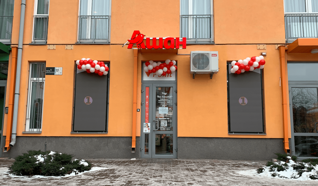 У квітні 2018 року Ашан відкрила у Дніпрі свій перший об’єкт в Україні у форматі супермаркету. Торгова точка площею близько 3500 кв. м, втілює концепт superstore, який передбачає швидке здійснення покупок, зручну навігацію, продовольчі товари у серці пропозиції, а також усе необхідне з непродовольчої групи. Цей концепт відрізняється від супермаркетів у класичному розумінні в першу чергу своєю пропозицією – окрім практичних та повсякденних товарів, пропонується великий асортимент товарів «для задоволення та добробуту» з акцентом на гастрономію та свіжі продукти. Площа магазину дозволяє представити широку гаму свіжих продуктів – хліб власного виробництва, м’ясні та рибні вироби, страви кулінарії, апетитну випічку та тістечка, суші та піцу власного виробництва, які можна скуштувати відразу у кафе, розташованому в самому магазині.