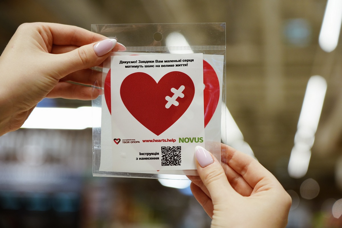 Кошти від продажу наліпок Novus перераховує Національному інституту серцево-судинної хірургії ім. Амосова на обладнання для дітей з вродженими вадами серця.