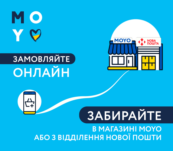 Крім того, ми продовжуємо приймати замовлення через наш інтернет-магазин moyo.ua і доставляємо замовлення за допомогою Нова Пошта. Доставка у магазини та поштомати, а також замовлення на суму вище 500 грн у відділення — безкоштовні.