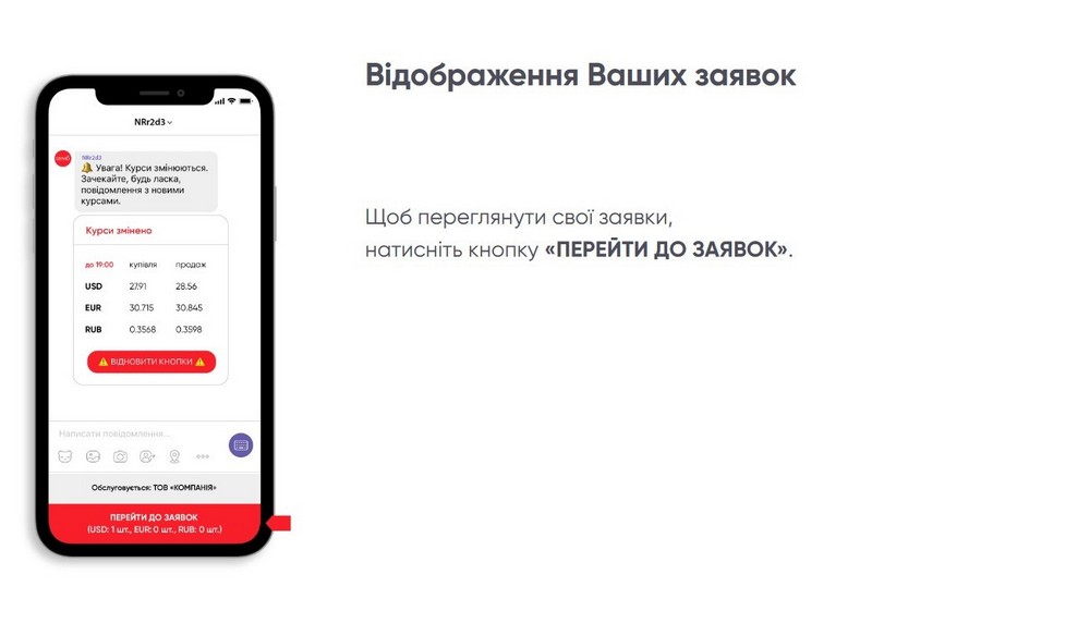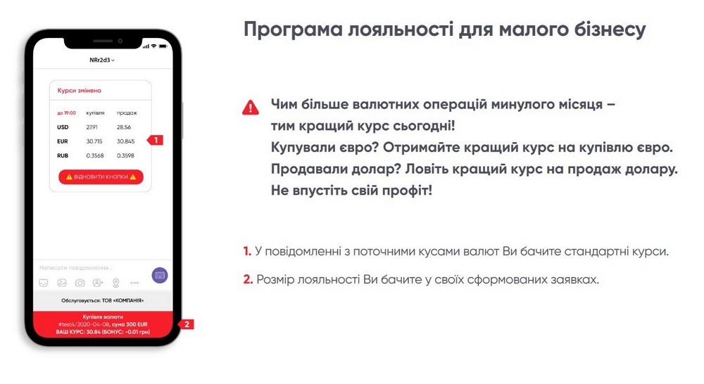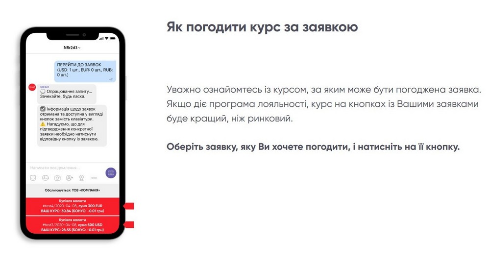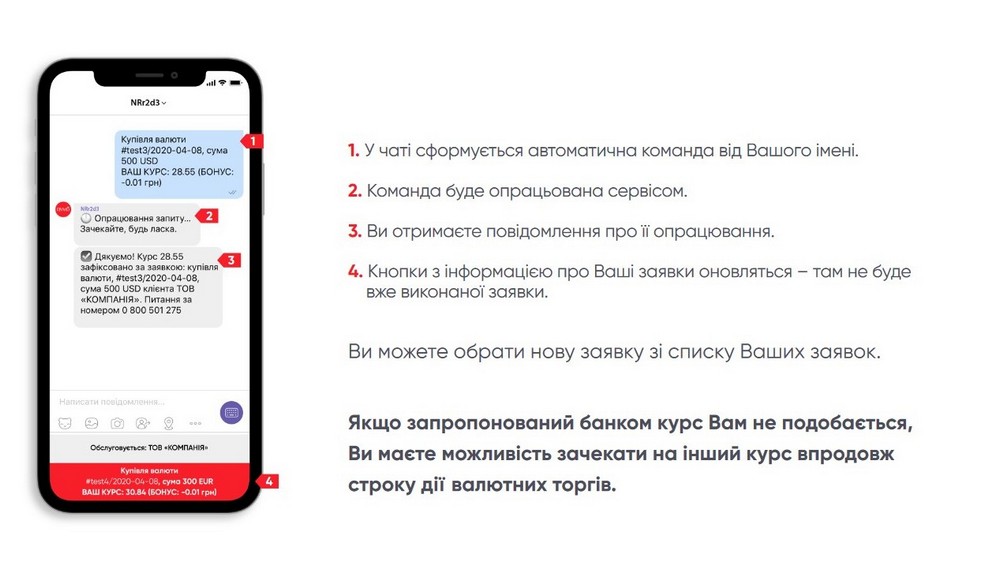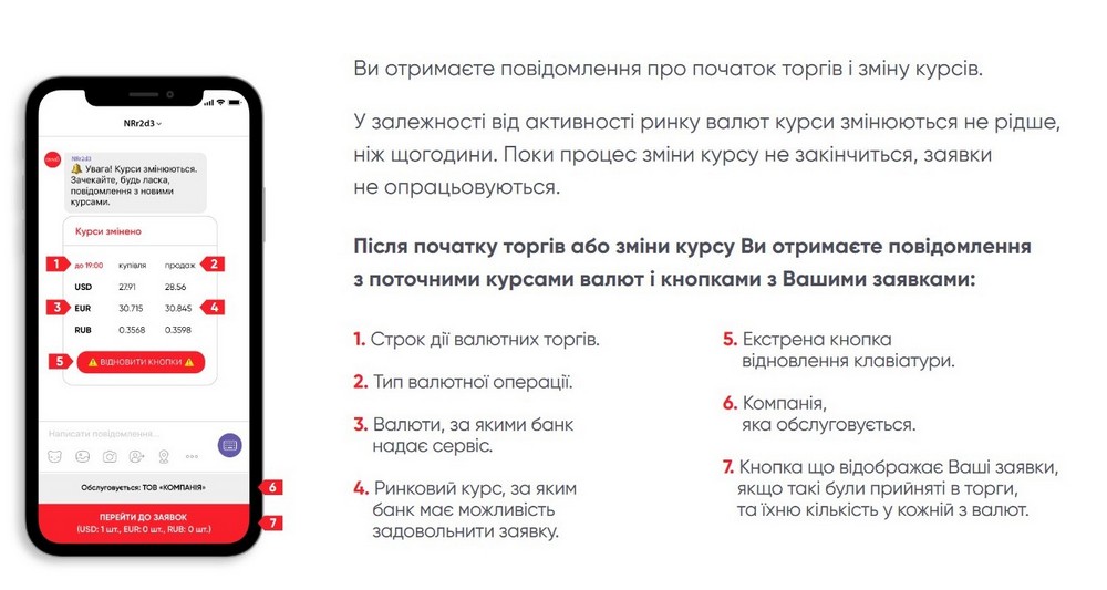 Після кожної зміни клієнт отримує відповідне повідомлення і приймає рішення: чи влаштовує його комерційна пропозиція і чи готовий він купити/продати валюту за запропонованим банком курсом.