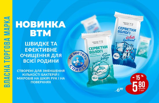 У період з 18.01 по 24.01 придбати вологі серветки морський бриз ТМ “Чиста вигода” можна за акційною ціною — всього 5,8 грн.