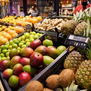 Свіжі фрукти та овочі знаходяться в одному просторі з готовими стравами, гарячими і холодними напоями.