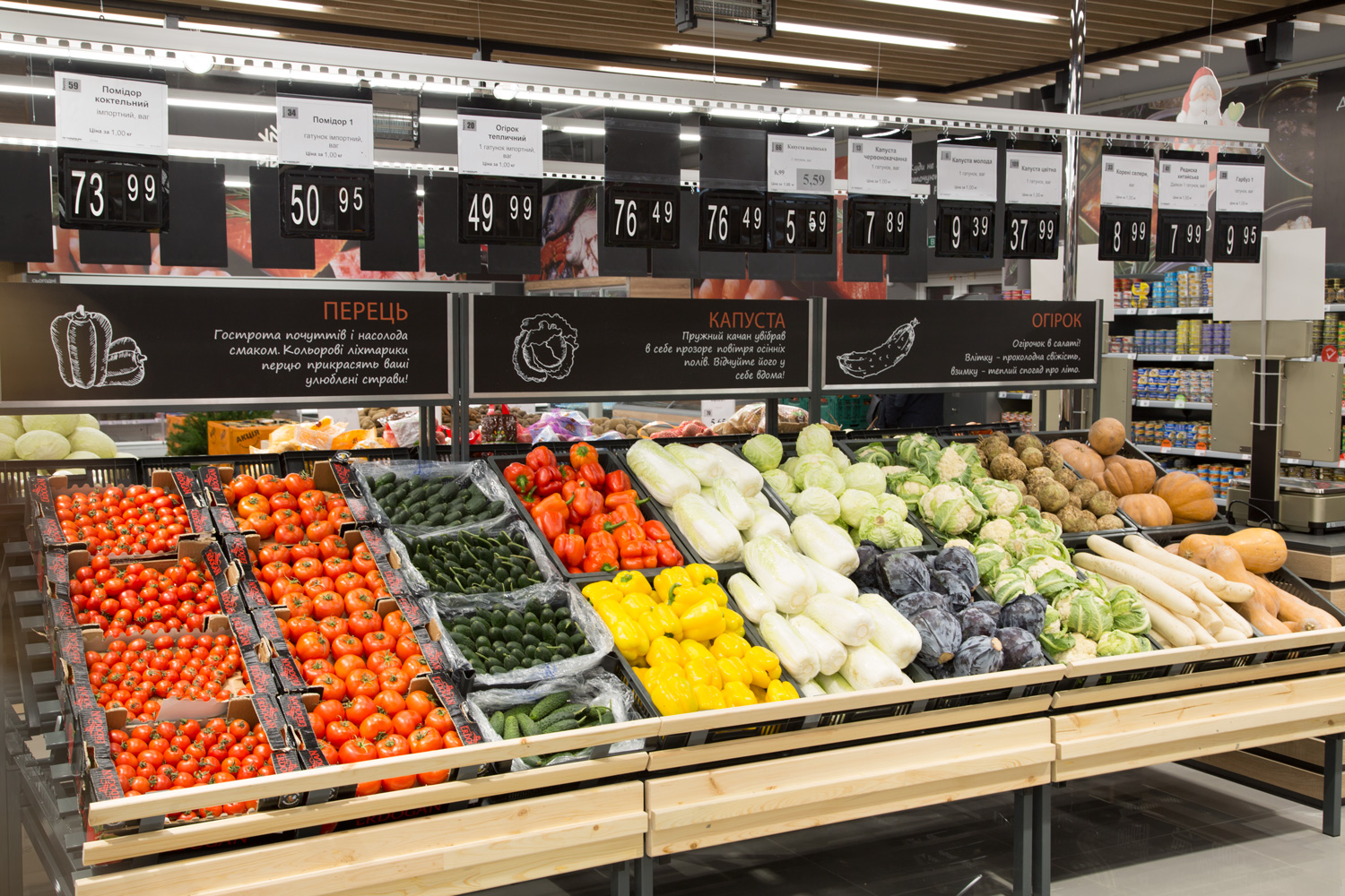 Як повідомила RAU прес-служба компанії, торговий зал супермаркету обладнаний 40 моніторами, найбільший з яких – 8,8 х 1,28 метрів. Вони встановлені в м’ясному і рибному відділах, гастрономії та кулінарії.