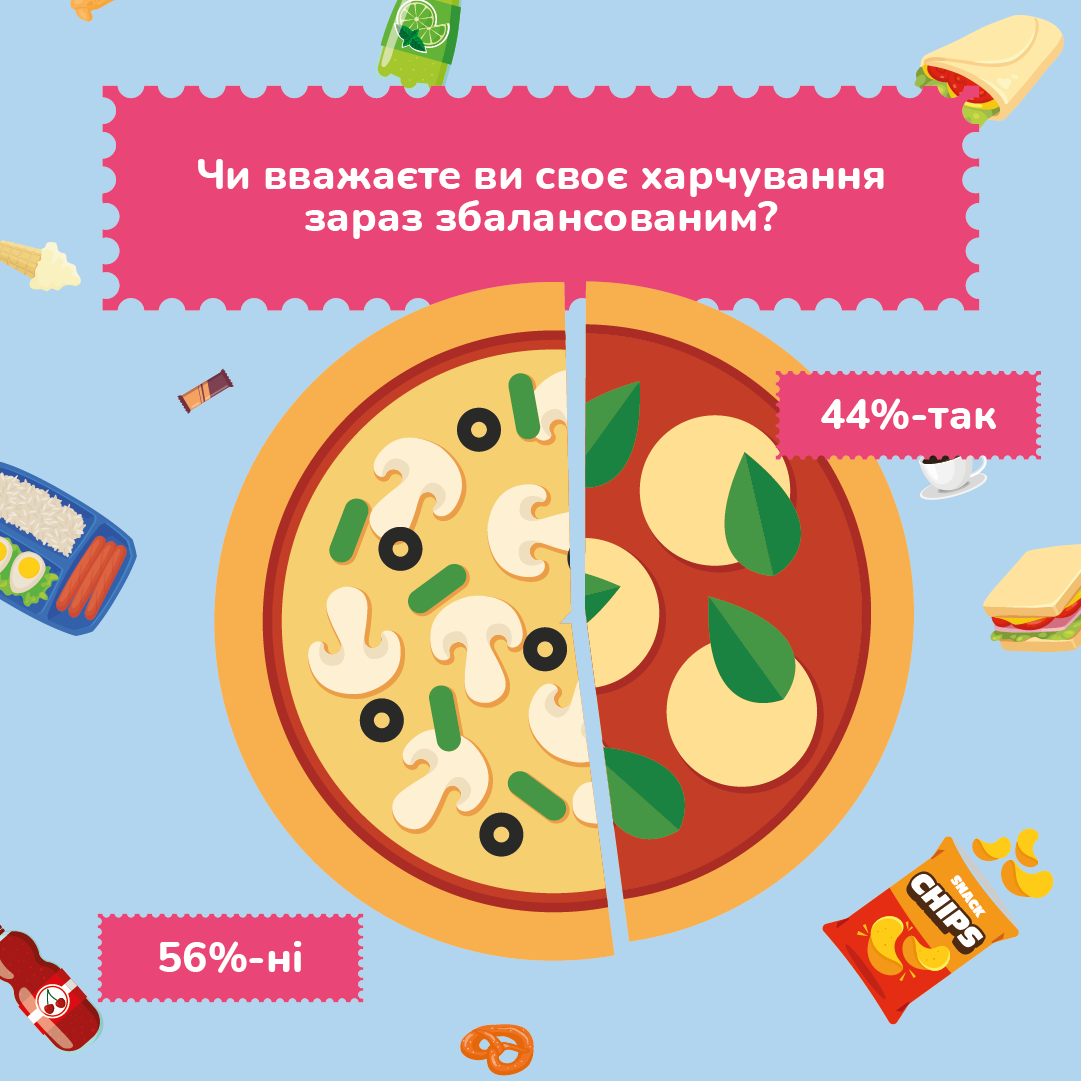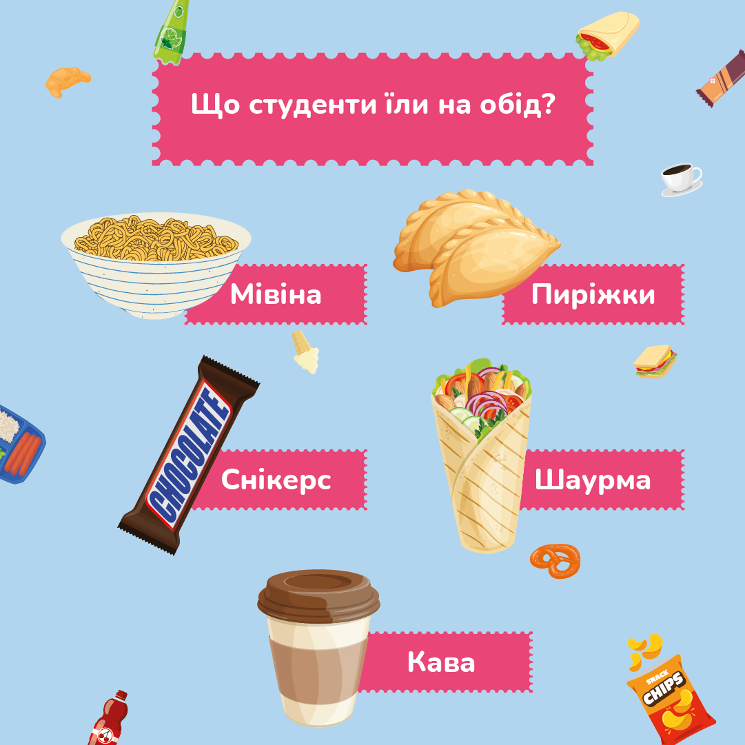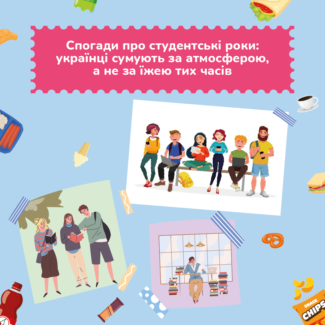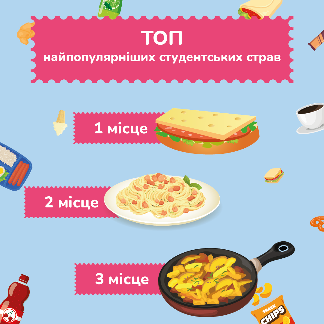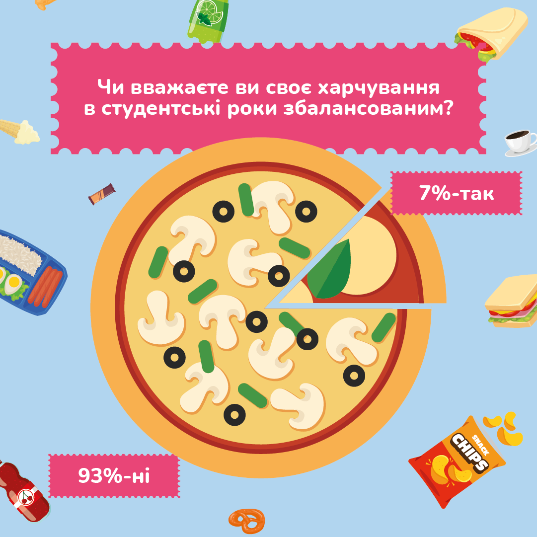 Серед інших фаворитів також опинились “Мівіна”, батончики Snickers, пиріжки, шаурма та кава — куди ж без головного напою студентських років. Загалом більшість учасників — цілих 93% — зізнались, що їхнє харчування в період студентства було геть незбалансованим. Та часи змінюються: зараз більша частина тих самих учасників слідкують за своїм харчуванням набагато більш ретельно.