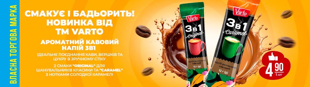 Мережа Varus вирішила порадувати своїх клієнтів новинкою — ароматний кавовий напій 3-в-1 від ТМ Varto.