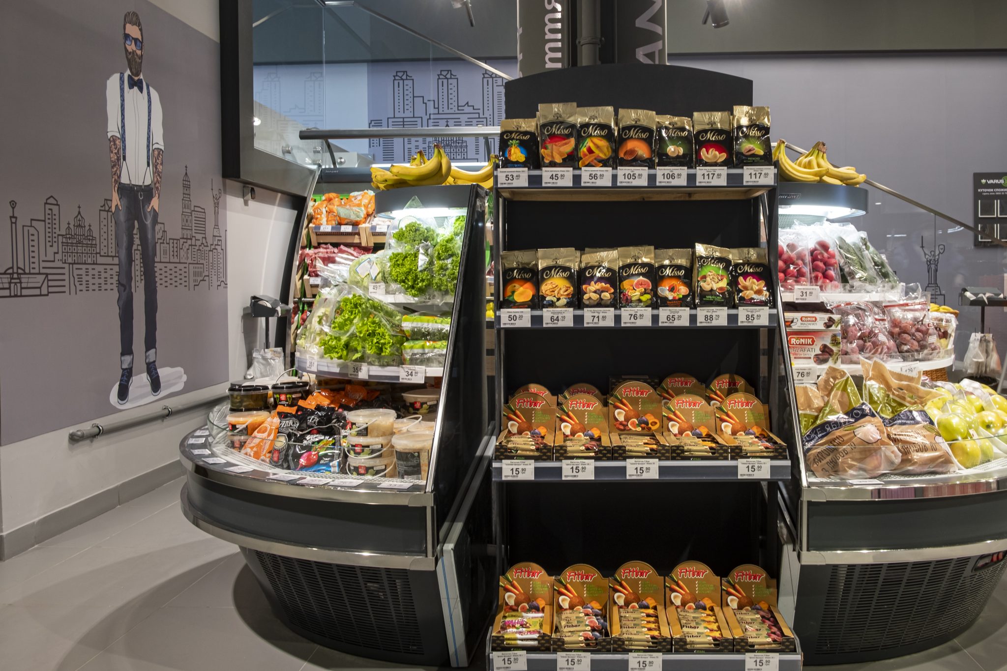 Вагоме місце в асортименті займають готова для вживання їжа (фреш-салати, хот-доги, картопля фрі та по-селянськи, батат) і снеки (сирні палички, курячі нагетси, сирники). При цьому зони food to go та coffee to go в магазині виділені окремо. Для зручності та економії часу покупців компанія також ввела в асортимент фасовані фрукти та овочі, які не потрібно зважувати перед купівлею.