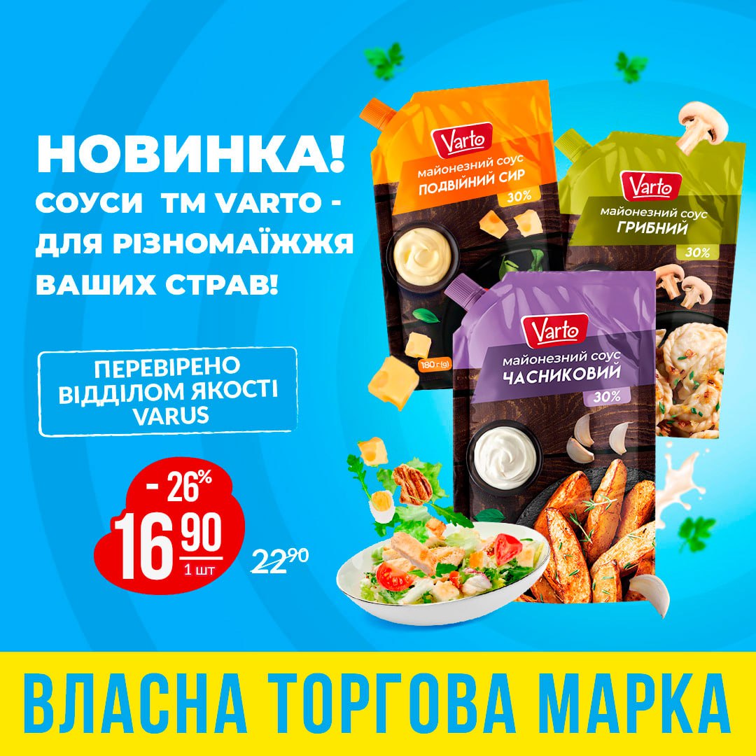Лінійка власної торгової марки мережі Varus — ТМ Varto — регулярно поповнюється новими якісними продуктами за доступними цінами. Тепер в асортименті ТМ Varto з’явились майонезні соуси з яскравими смаками.