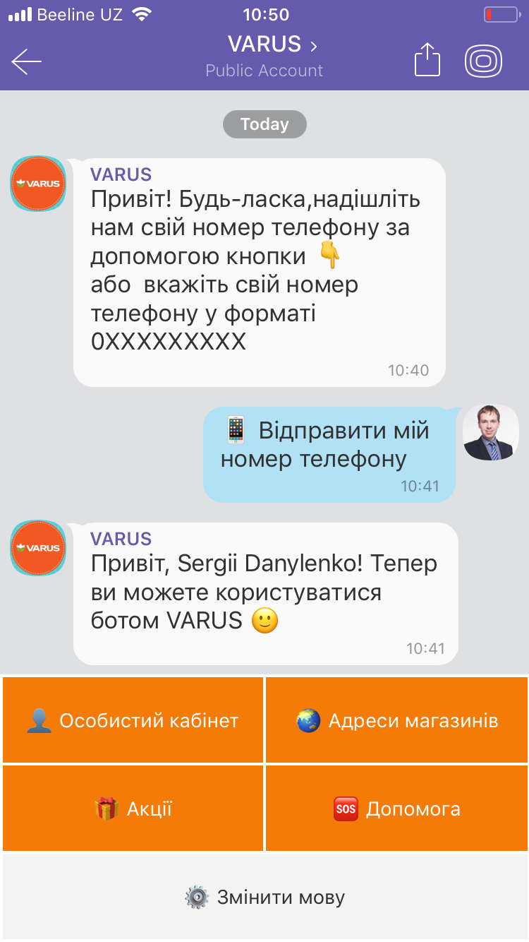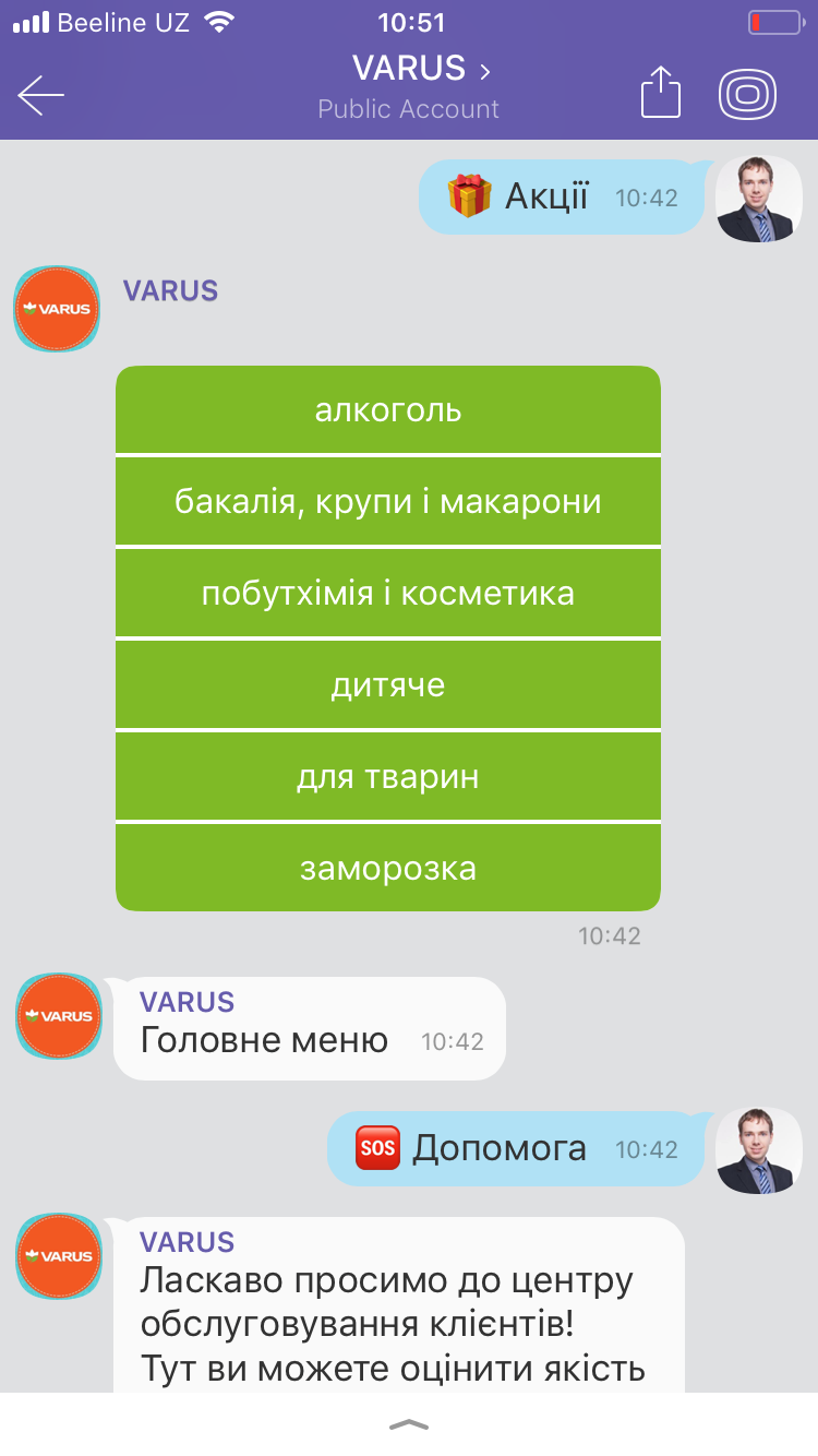 В рамках стратегії діджіталізаціі мережа продуктових супермаркетів Varus в Україні запустила бота в месенджері Viber.