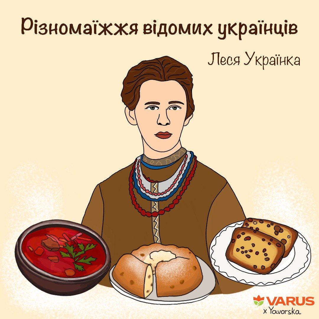 Мережа Varus до Дня народження відомої української поетеси Лесі Українки запустила новий кулінарно-пізнавальний проект «Різномаїжжя відомих українців». Мета – знайомство зі смаковими вподобаннями та улюбленими стравами видатних українських особистостей різних епох.