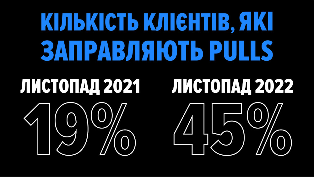 У системі продажів бензин PULLS мав 19%. Як тільки ми запустили проєкт, то мали 45%. Та й ми отримали неймовірну кількість відгуків в соціальних мережах.