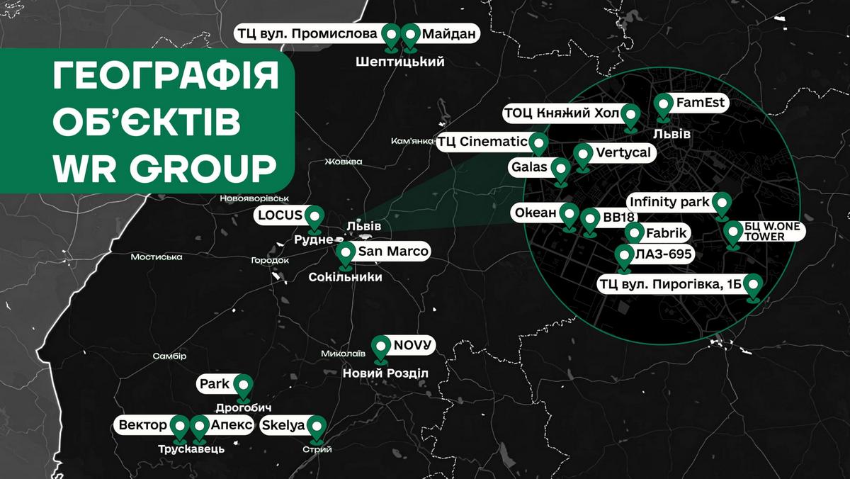 WR Group — девелопер повного циклу, який спеціалізується на розвитку малих ТЦ з високою ефективністю використання простору. У портфелі компанії вже 13 реалізованих об’єктів, ще 9 — на етапі будівництва. Зокрема, у Львові переважно зосереджені багатофункціональні об’єкти, а також невеликі ТЦ формату «біля дому».