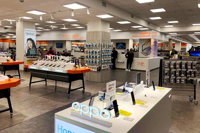 У столиці це вже п’ятий Фокстрот такого формату. Загальна площа – 2077 кв. м, торгова – 1500 кв. м, що дозволило забезпечити максимальну представленість асортименту в усіх категоріях товару. До існуючих додалися нові бренд-зони від ТМ Gazer, LG (телевізори), Electrolux (велика побутова техніка), шоу-рум від Huawei тощо. Це дає можливість покупцям протестувати техніку і купити ту, що найбільше відповідає потребам.