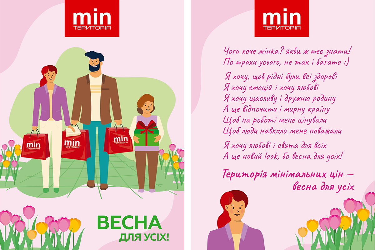 Довідка. Територія мінімальних цін – це мережа шопінг–центрів для всієї родини, яка працює на ринку вже 12 років. Це 13 великих магазинів (2000-3000 кв. м кожен) одягу, взуття, іграшок, галантереї, товарів для відпочинку для всієї родини – всього понад 500 000 найменувань різних товарів. 11 магазинів Територія мінімальних цін знаходяться в Києві та по одному у Чернігові та Івано-Франківську. Їх місія – зробити життя людей яскравішим і красивішим, додати радості за рахунок надання можливості виглядати модно, купувати якісні товари для себе та всієї родини та не переплачувати за них.