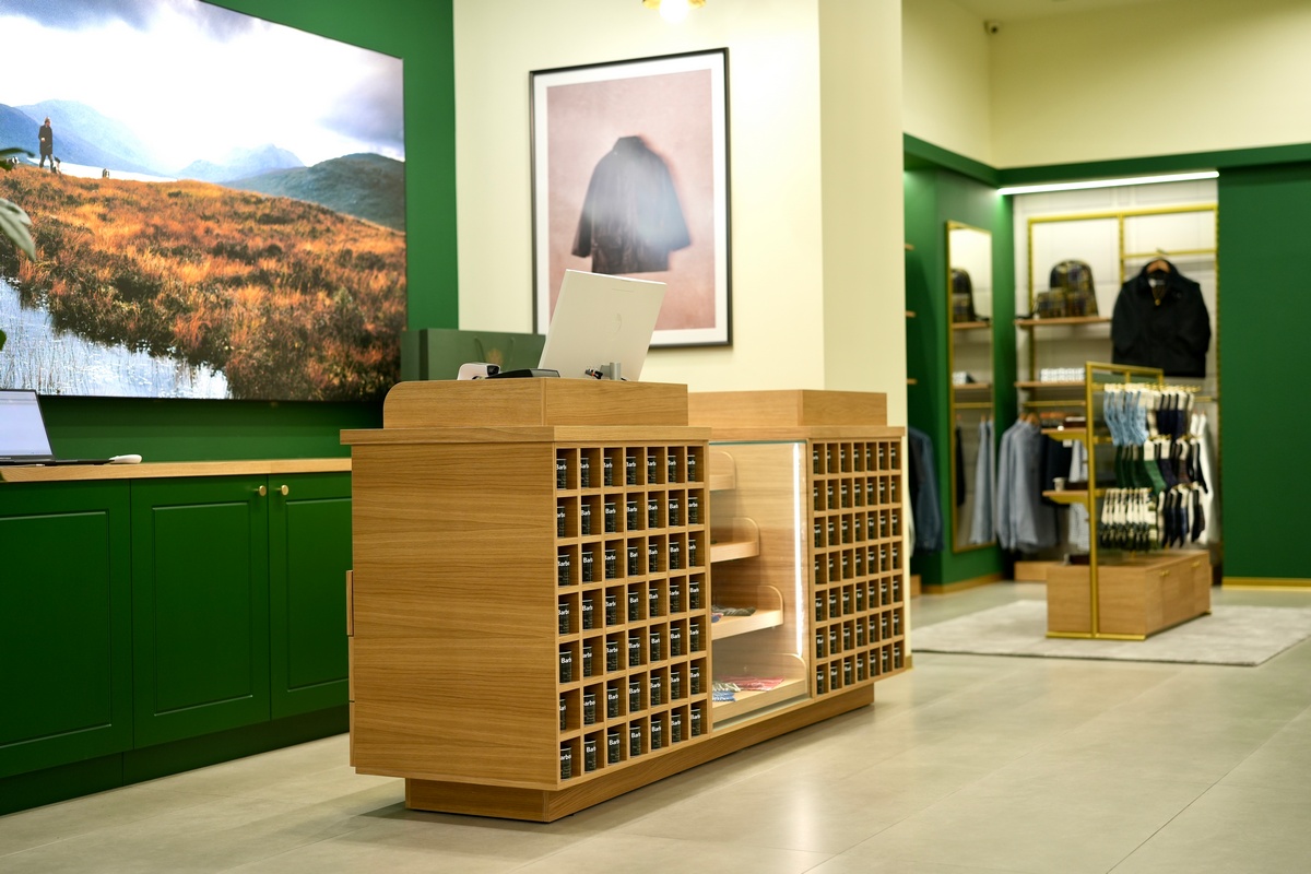 Простір представляє як класичні моделі, що сформували ДНК Barbour, так і актуальні колекції, адаптовані до сучасного міського стилю.