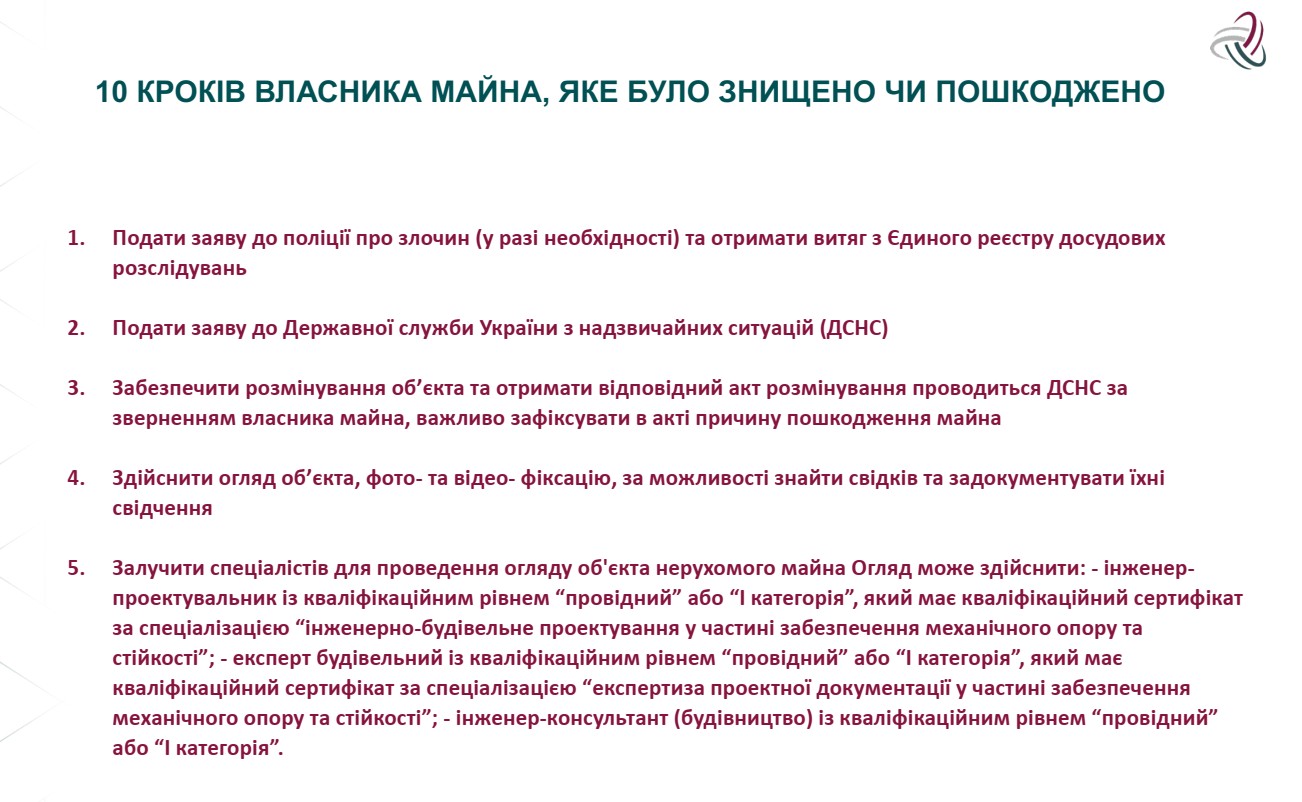 Нижче наведено 10 основних кроків, які треба пройти, аби зафіксувати пошкодження та отримати можливість на компенсацію збитків.