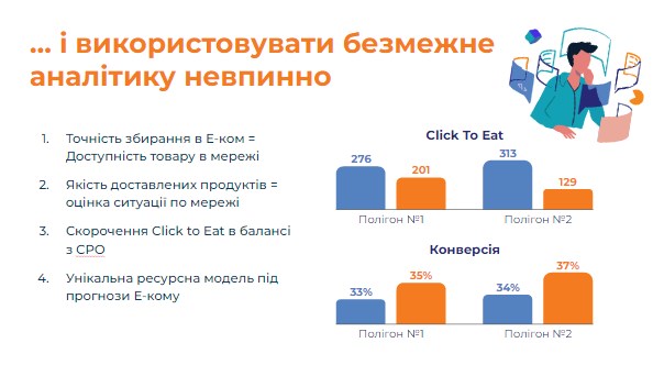 - Точність збирання в e-commerce = доступність товару в мережі. З запуском онлайн ми знайшли неймовірну синергію, коли гості самі на сайті та додатку обирають товар, по суті, голосуючи і показуючи, доступність по яких товарах супер важлива і впливова на оборот. Ми розкладаємо кожне замовлення і факт чека по ньому на групу причин: був на залишках – не поклали – це проблема доступності в магазині, якщо ж на момент збирання товару вже не було – логістична проблема достатності запасів. Скажу, що точність збирання в 2020 році ми ще не міряли, а на початку 2021 року вона була 77% по позиціях, тобто ми не вкладали 23% товарів, хоча вони були на залишках. На сьогодні цей показник – 96%
