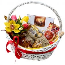 У цих кошиках ви знайдете не лише продукти, але й справжній настрій. Вони можуть бути наповнені добірними гастрономічними делікатесами, ароматними кавовими зернами чи винами вишуканого смаку. Кожен кошик – це історія, що розповідається за допомогою обраного вмісту. Відчуйте радість, подаровану ароматами кави, шоколаду, чи можливо, екзотичними спеціями. Вони створюють атмосферу тепла та затишку, яку можна подарувати будь-кому, незалежно від випадку. Кожен кошик – це уважно підібрана колекція, яка вражає не тільки вмістом, але й стилістичним оформленням. Від класичних корзин до елегантних упаковок – кожен детально продуманий, аби надати вашому подарунку особливий шарм.