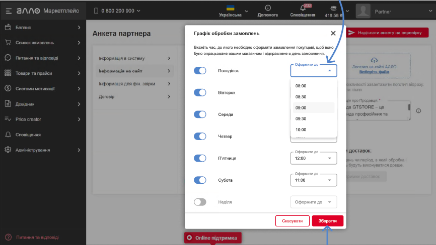 - Графік обробки замовлень дасть змогу всім покупцям знати точні умови обробки онлайн-замовлень, включно з орієнтовним часом доставки. Цю інформацію мерчант додає в особистому кабінеті, і вона відображатиметься на картці товару для покупців.