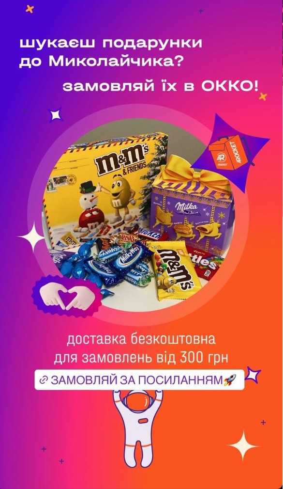 Серед нових для себе форматів є й успішний кейс — робота з мережею АЗК ОККО у 29 містах. Наприклад, 19 грудня стало рекордним днем за кількістю замовлень з цієї мережі, стимульоване промоакцією із доставки солодких подарункових наборів.