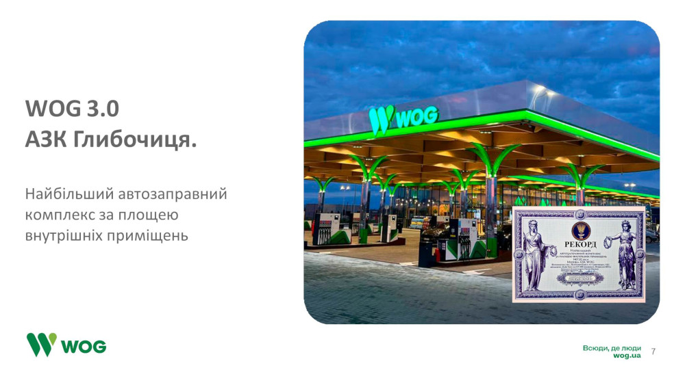 WOG 3.0 – це клієнтоцентричний простір, сучасний, адаптований та зручний. Всі ці складові втілені в кейсі АЗК Глибочиця – найбільшого автозаправочного комплексу за площею внутрішніх приміщень (1430 кв. м).
