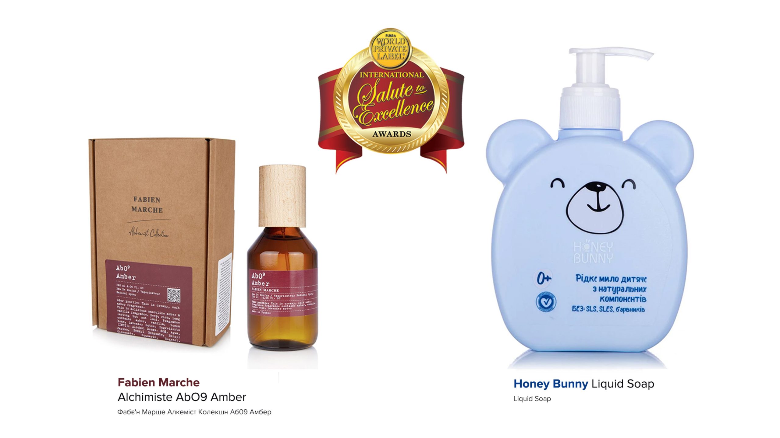 В категорії Men’s Toiletries (Чоловічі туалетно-косметичні засоби) першість здобула парфумована вода Fabien Marche Alchimiste AbO9 Amber, яку також відзначили за аромат і концепцію пакування. Над створенням цього проєкту працювали бренд-менеджер Максим Сургай, керівниця напряму Наталія Білько, директорка департаменту Галина Ободець.