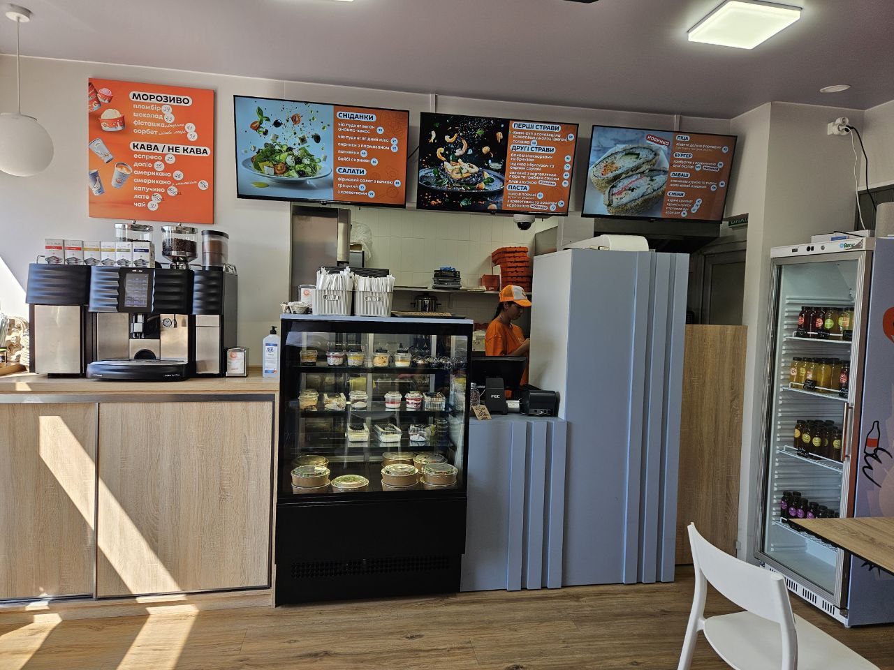 — Це пілотний партнерський заклад, який відкритий над дорогою Луцьк-Львів. Його площа 26 кв. м, а в залі п’ять посадкових місць, проте він більше розрахований саме на виніс страв. У цей заклад ми повністю постачаємо всю продукцію, а наш партнер займається операційною діяльністю. Попри невелику площу, меню дуже різноманітне: є піца, перші та другі страви, класичний фаст-фуд, морозиво та напої.