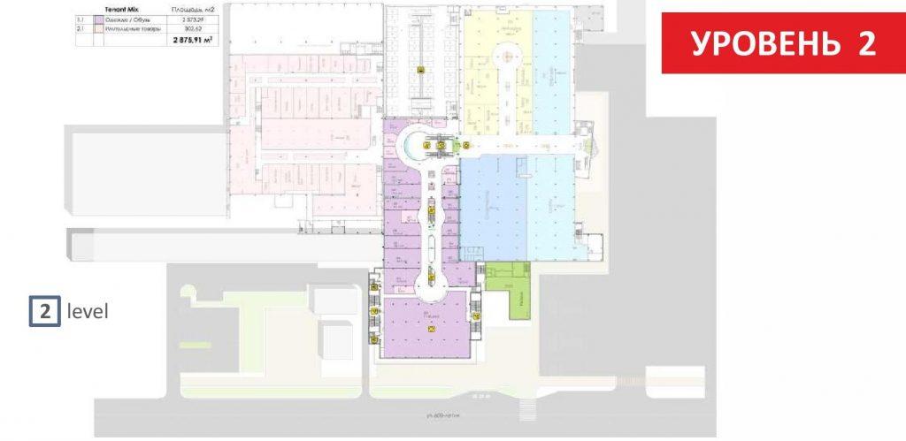 Згідно з концепцією, друга черга складається з трьох рівнів. Верхній поверх повністю відведений під розважальну частину. Тут розміститься сучасний багатозальний кінотеатр, дитячий розважальний центр і зона громадського харчування, завдяки чому відбудеться істотне посилення діючих в першій черзі Мегамолл зон боулінгу та караоке. Другий поверх відведений під магазини одягу та взуття середнього цінового сегмента, що значно урізноманітнює пропозицію ТРЦ. На першому поверсі другої черги розмістяться великий фасадний ресторан і кілька універмагів. В рамках реконцепції, також, передбачено створення ювелірного кварталу.