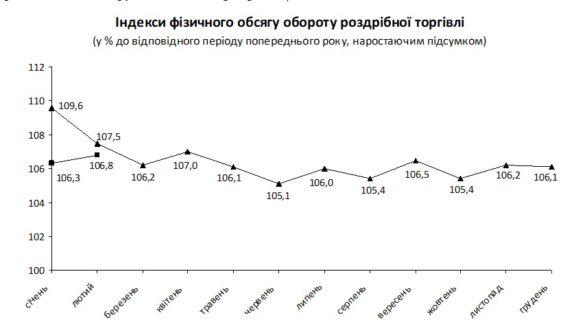 Разом з тим, у порівнянні із січнем 2010-го оборот роздрібної торгівлі зменшився на 4,4%.