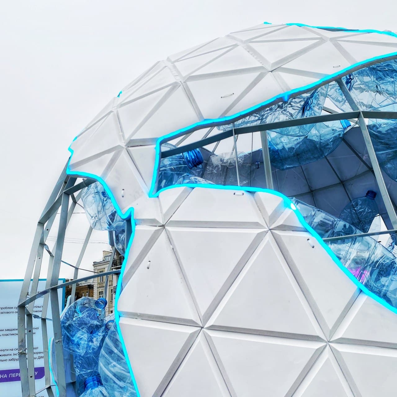 20 грудня 2021 року за адресою Спортивна площа 1 А з’явилась велика 3D-модель планети Земля з яскравою підсвіткою і, що найголовніше, пластиковими упакуваннями всередені конструкції. Інсталяція була розроблена брендом Watsons з метою нагадати українцям про небезпечний рівень відходів, які ті залишають кожен день. А конкретно мова йшла про тари з косметичних та побутових засобів, які можна здати на переробку чи використовувати повторно.