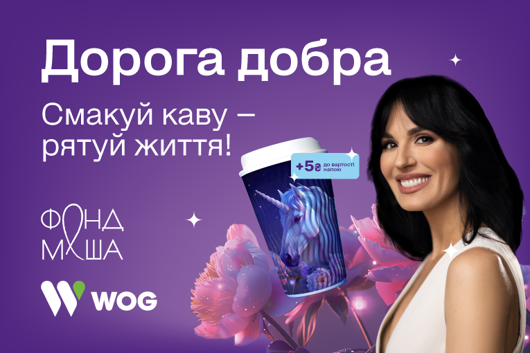 2 вересня розпочався щорічний благодійний проєкт WOG «Дорога добра». На всіх АЗК мережі з`явився його традиційний атрибут – благодійні фіолетові горнятка з єдинорогом. Їхня вартість – 5 грн. Смакуючи з них улюблені напої, ви робите внесок у збереження життів діток, які постраждали внаслідок ворожих атак.