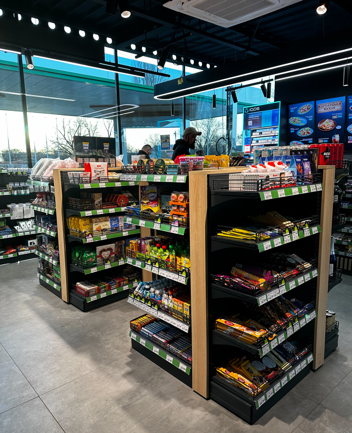 Відновлений АЗК тепер має розширену зону кафе, де, залежно від потреб гостя, можна перекусити чи повноцінно пообідати, поснідати або смачно повечеряти. Окрім того, на столиках встановлені зарядки для різних типів гаджетів, тож на АЗК завжди можна зарядити мобільні пристрої чи попрацювати.