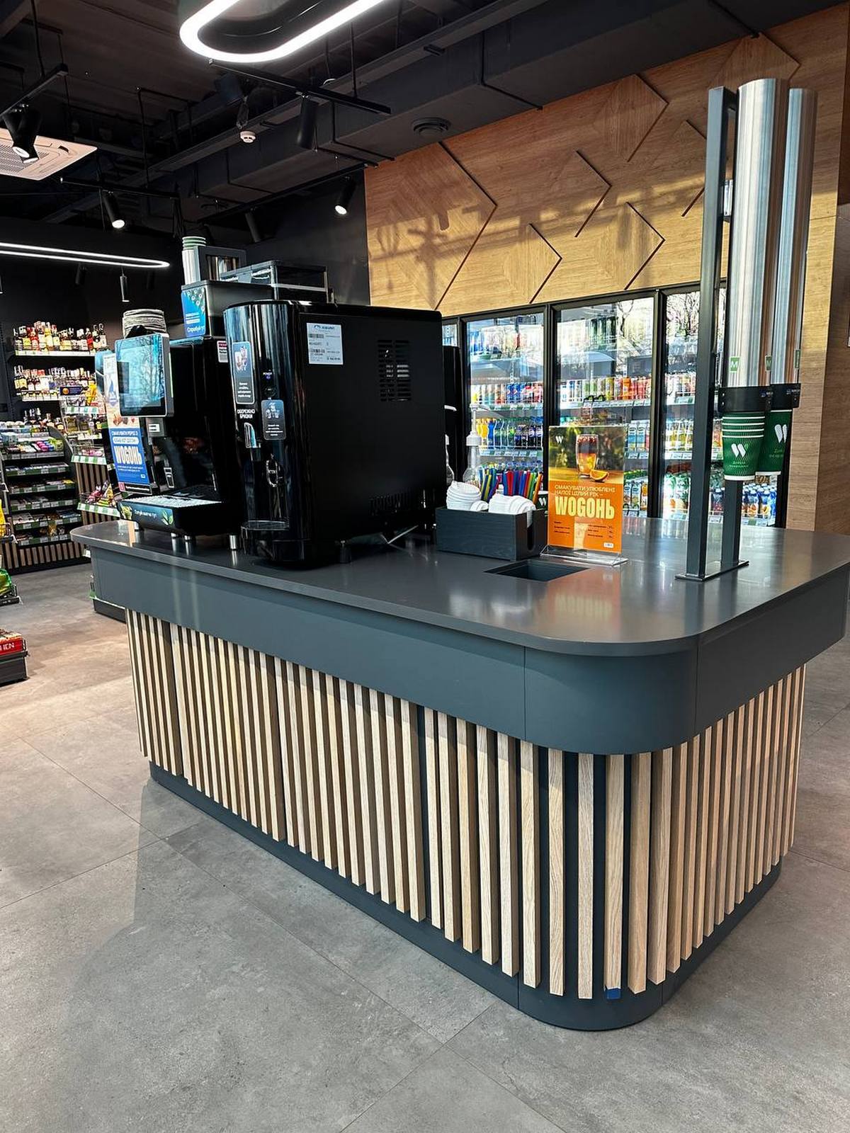 Простір всередині АЗК організовано таким чином, щоб максимально покращити клієнтський досвід. Так, візитівка WOG – найкавовіша кава – має окремо виділену зону: тепер кавомашини розташовані на спеціальному кавовому острові WOG Barista. Це дає змогу покращити ергономіку приготування кавових напоїв та розвести гостьові потоки.
