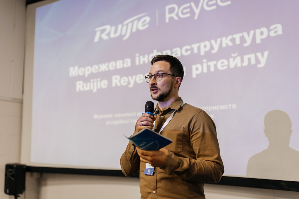 Завершив блок презентацій бренд-менеджер Ruijie Олександр Атаманюк з презентацією «Мережева інфраструктура для ритейлу».