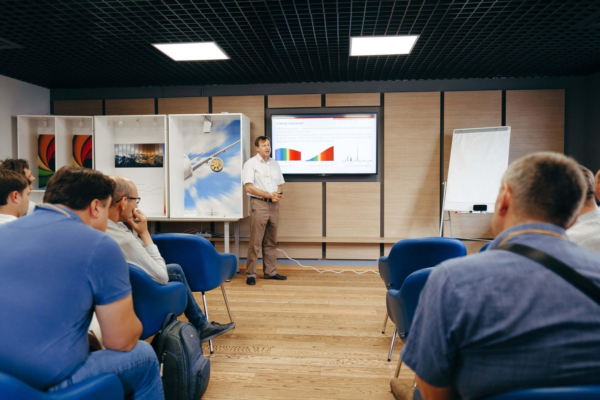 Третім спікером першої сесії став Дуйшен Еркімбаєв, керівник відділу маркетингу ГК «Світлотек». В рамках презентації “видимі характеристики світла” він розповів, що таке індекс передачі кольору, чому важливий параметр R, про колірну температуру, коефіцієнт пульсації, Індекс засліплення (UGR) і багато іншого.