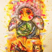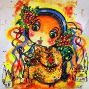 «Я хочу, щоб мої картини несли радість, світло і добро. Я сподіваюсь, що кожен хто дивиться на них, відчуває той щасливий затишок, який буває лише у дитинстві. І навіть коли негода, тривога чи просто поганий настрій – глянеш на яскраві кольори, на усміхненого, доброго, трохи мультяшного янгола, і на душі робиться світліше», – коментує авторка картин Юлія Косівчук.