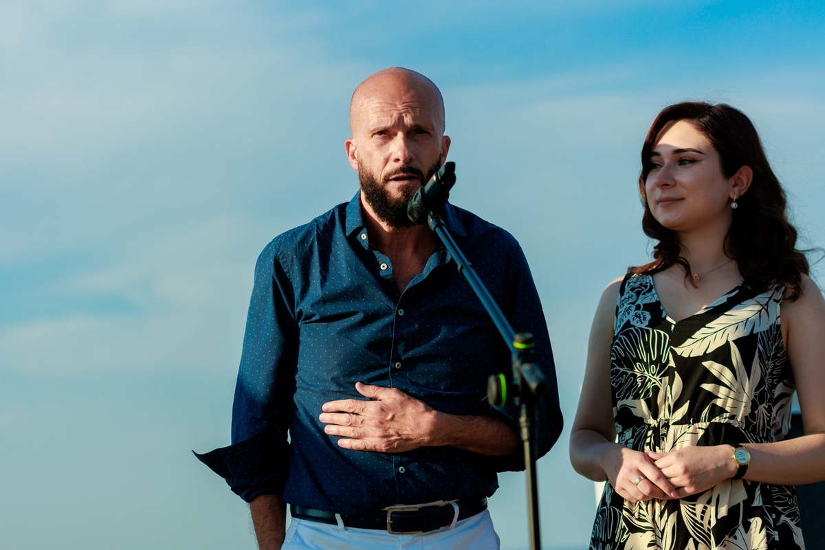 Модератор події Наталія Островська, ірпінчанка та журналістка, яка висвітлює події в Україні з першого дня великої війни, запрошувала почергово висловитись спікерів. Першим взяв слово міський голова Олександр Маркушин. Він зазначив, що пошкодження будівлі були настільки значними, що багато фондів просто не брались допомагати. «Жителі до останнього не вірили, що зможуть повернутися додому, але ми це зробили. Дякую за це своїй команді та нашим партнерам — благодійному фонду «Леруа Мерлен Солідарність». Маю зазначити, що це тільки початок, і в нас у роботі з фондом ще 11 багатоквартирних будинків у місті», — повідомив мер Ірпеня.