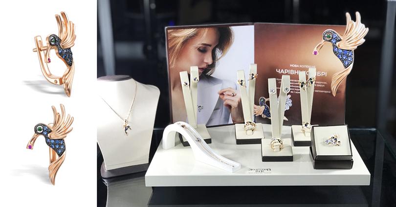 Головною темою колекції стала пташка колібрі, яка символізує красу, легкість, ніжність, що є актуальною темою для весняної пори року. До асортименту «Чарівні колібрі» входять 11 золотих виробів, серед яких брошка, браслет, підвіска, три каблучки та п’ять пар сережок. Власницям прикрас надається можливість комбінувати та поєднувати вироби самостійно, на свій смак.