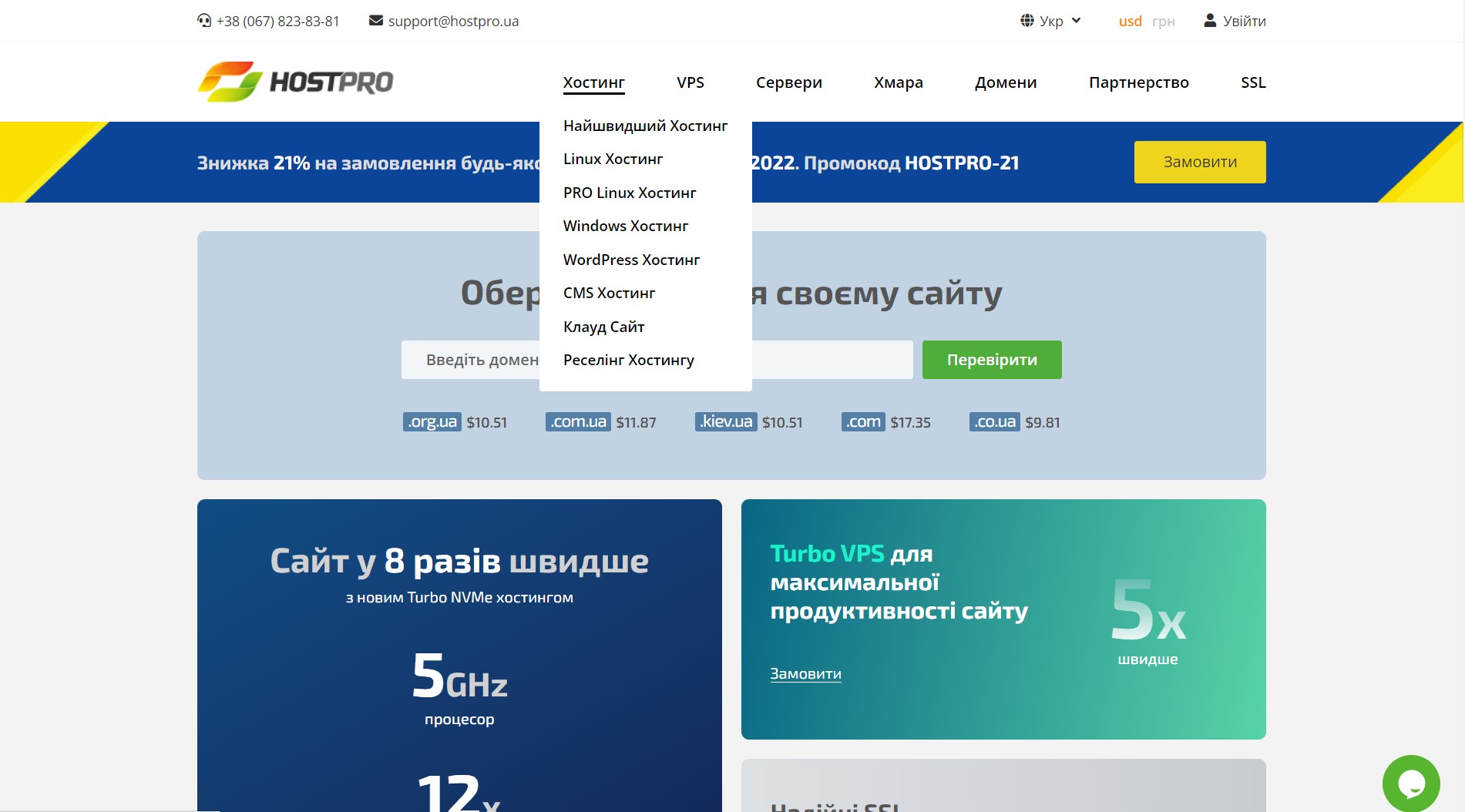 Місцерозташування серверів Hostpro — Україна, Нідерланди, Польща та США. Мінімальний тариф для сайту на WordPress — 4,55$ на місяць, 20 ГБ на NVMe-диску для п’яти невеликих сайтів або блогів. При замовленні тарифу на рік і більше — SSL-сертифікат та домен com.ua на рік у подарунок.