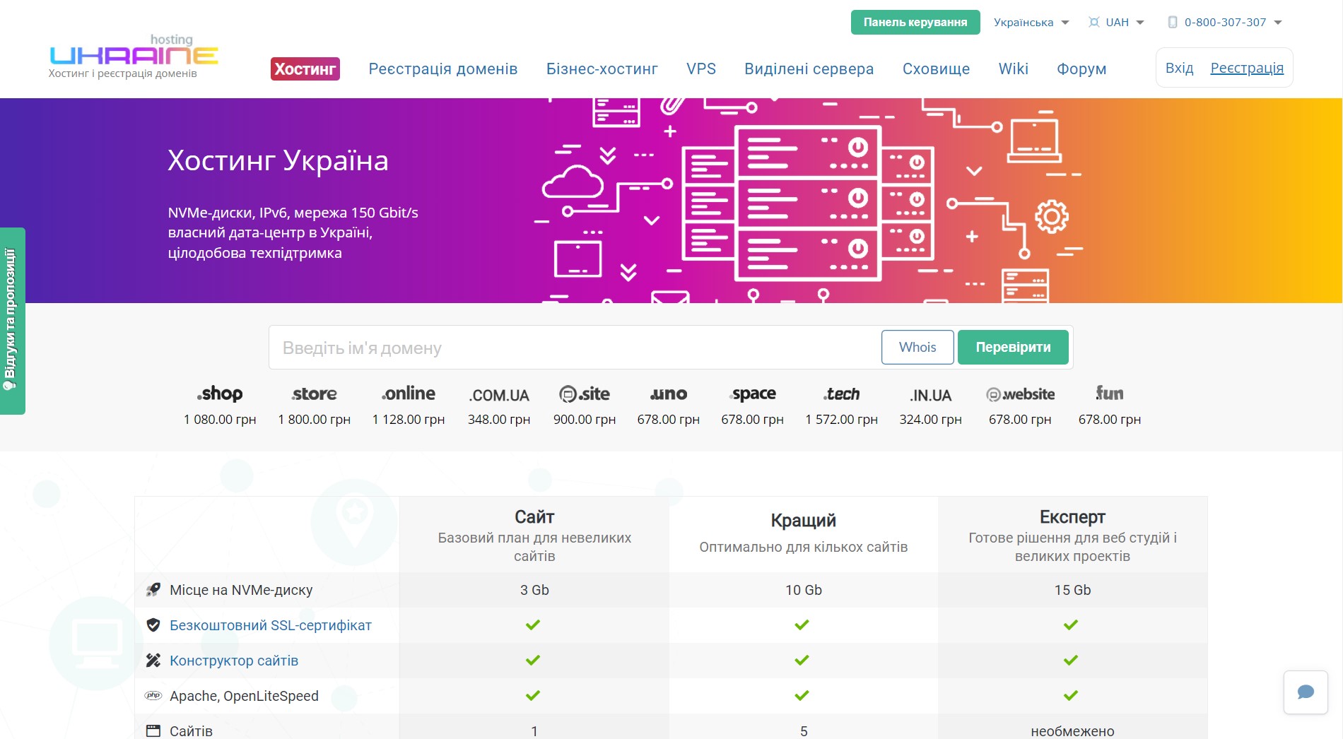 Хостинг «Україна» розташував дата-центри в Україні, Німеччині, Фінляндії, Франції, Канаді, США, Сінгапурі та Австралії. Мінімальний тариф для сайту на WordPress — від 114 грн на місяць, 3 ГБ на NVMe-диску для сайту. Безкоштовний SSL-сертифікат та конструктор сайтів.