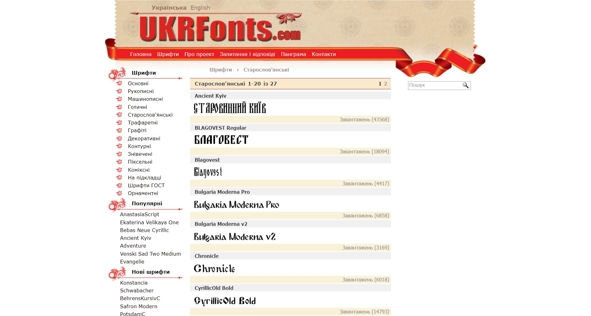 Шрифти — складова фірмового стилю компанії. Їх використовують для написання назви бренду, дизайну упаковки, оформлення вебсайту тощо. У кириличних шрифтах може не бути українських літер і, ї, є, ґ. Розглянемо ресурс, який колекціонує шрифти та перевіряє кожен з них на наявність всіх літер української абетки.