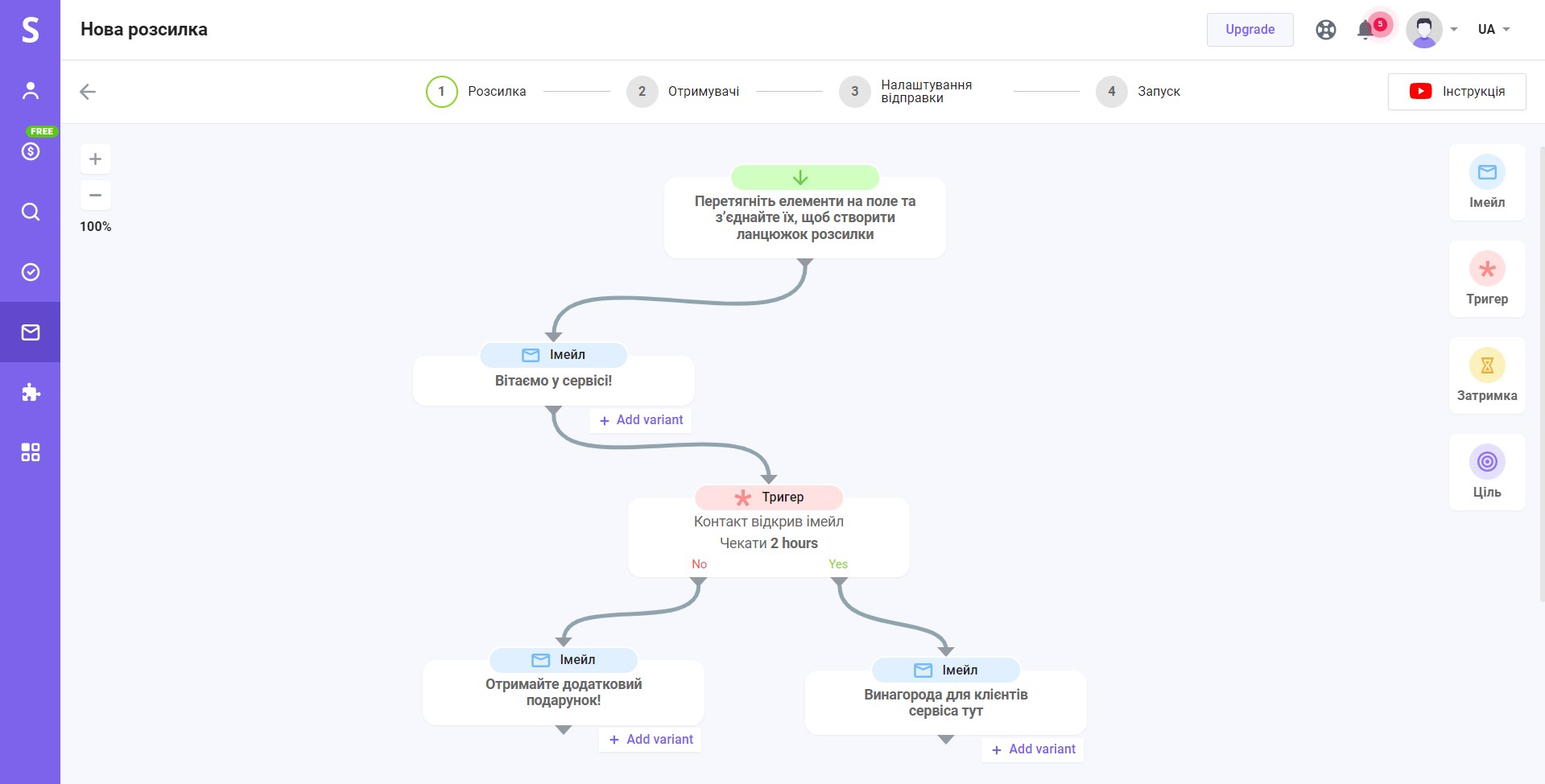 Ланцюжок тригерної розсилки в сервісі Snov.io