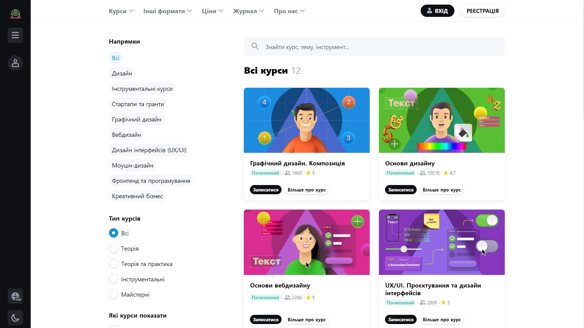 Український освітній майданчик «Креативна практика» пропонує курси для графічних дизайнерів, вебдизайнерів та фронтенд-розробників. Майданчик відкрив безкоштовний доступ до курсів із графічного дизайну, вебдизайну, а також роботи у Adobe Photoshop, Adobe After Effects, Adobe Illustrator та Figma.